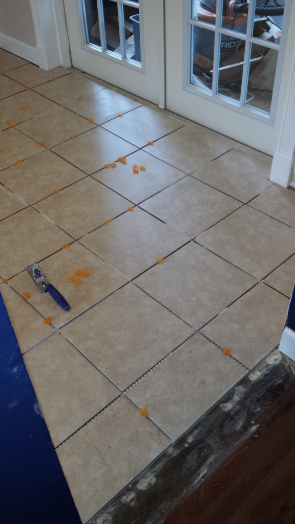 wpid-20140904_132929.jpg Published September 15, 2014 at 1152 × 2048 in Foyer/Dining/Front Room Renovation Whole tile right up to the back door!