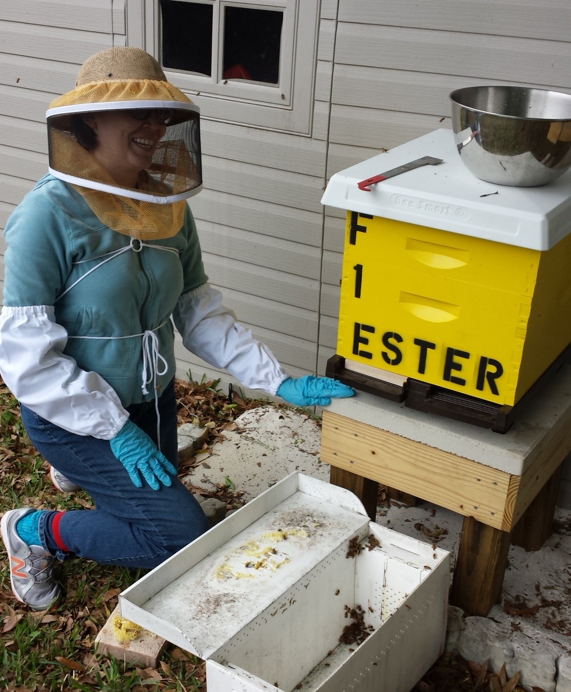 After lots of anticipation and anxiety we finally got bees. There aren’t many things I would gladly wake up for extra early for on a Saturday, but this is one. We drove up to Mims FL, and picked up our nuc. It is very strange to be handed a box that is buzzing. When we got home two little ones had escaped. Luckily I was able to coax them onto the box so we could go outback together and begin the unboxing. GoPro chest cam caught some great bee action shots. Also some singing may have occurred.