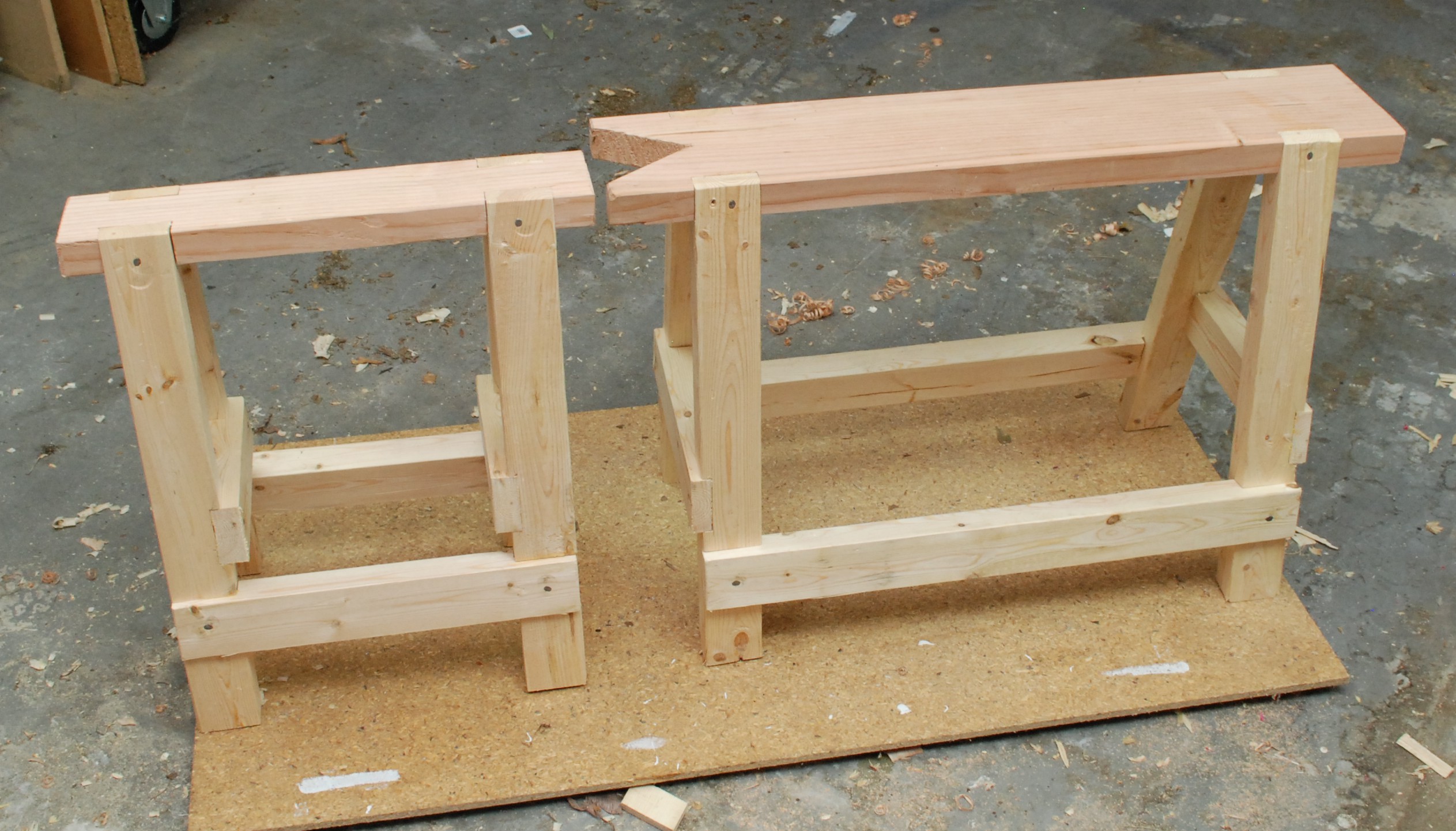 In an effort to increase my use of hand tools I need a better way to saw big boards. Right now I can only cut smaller things on my work bench. If anything needs ripping, or a bigger board needs cross cutting it has to go to either the chop or table saw. With that, I present my saw bench set!