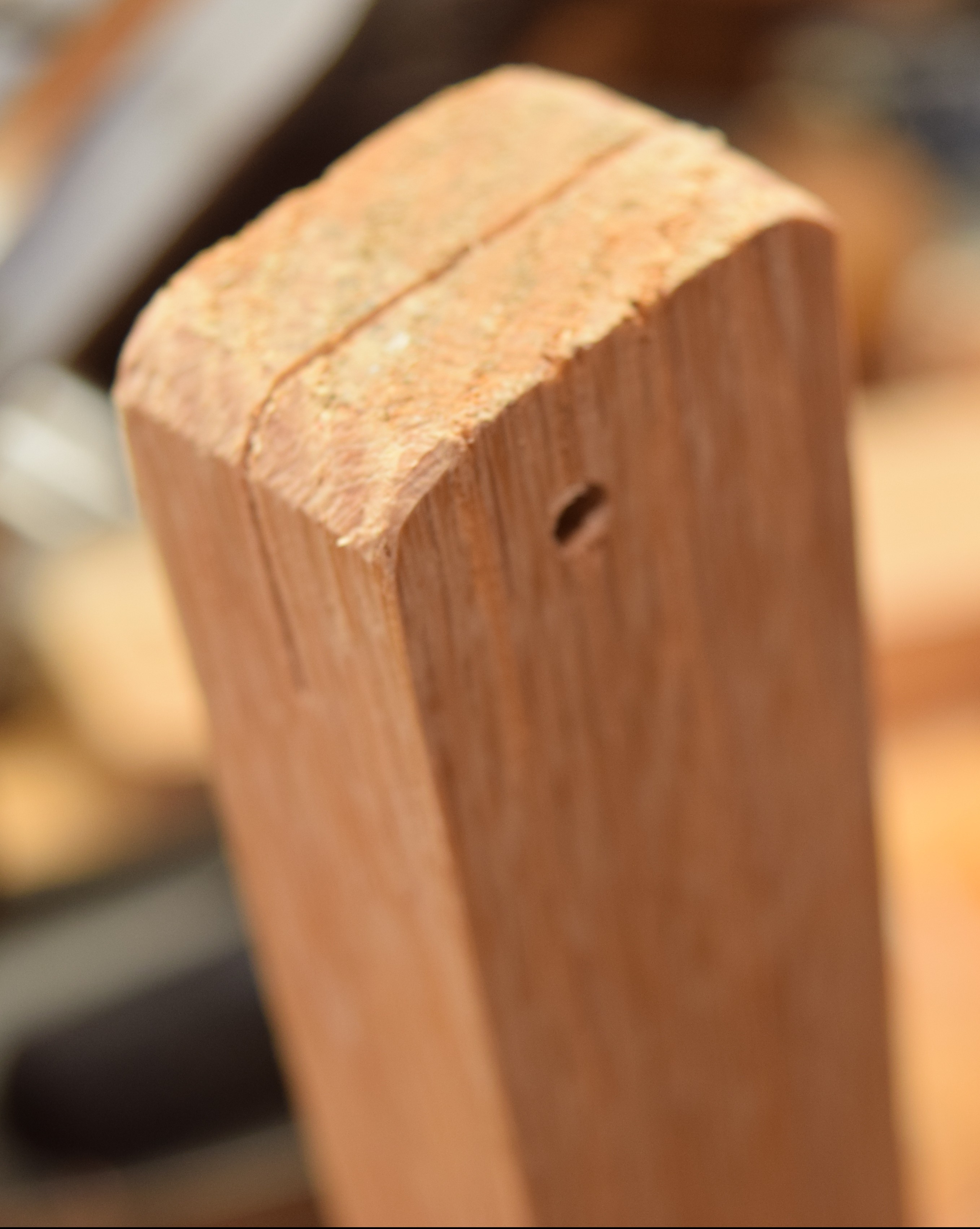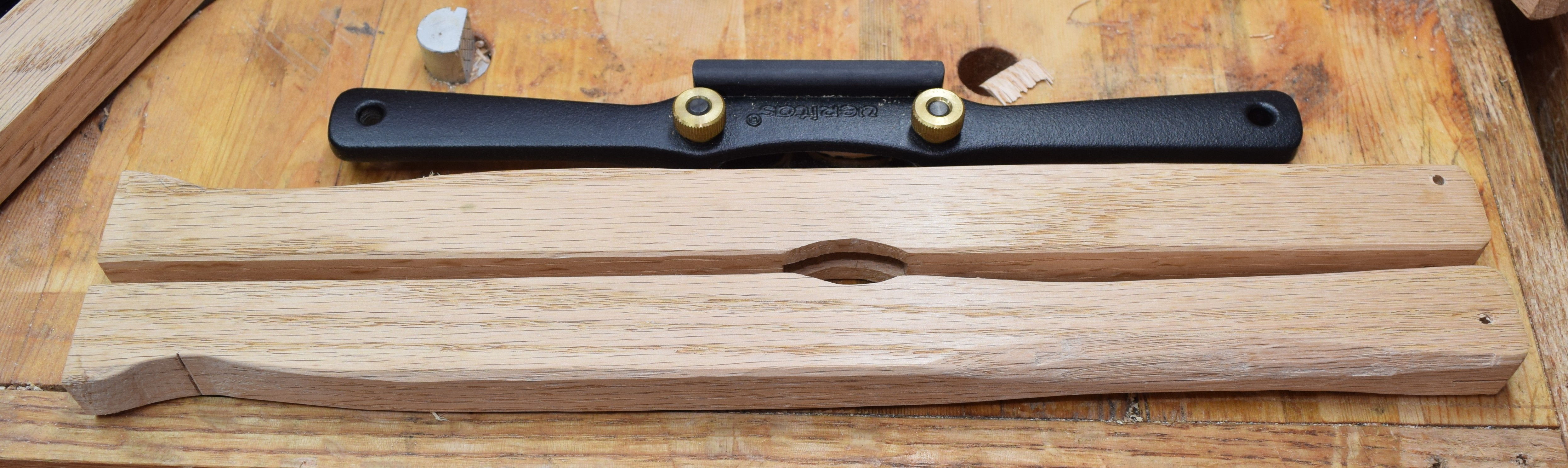 I clamped the board in my front vise and adjusted the height until the bag was at a good level. This worked out really well. Any board will do, and you can throw it back on the scrap pile when done. Don’t bother with the jig, do this.
