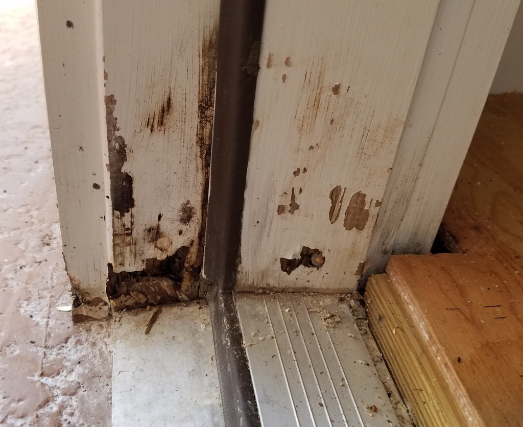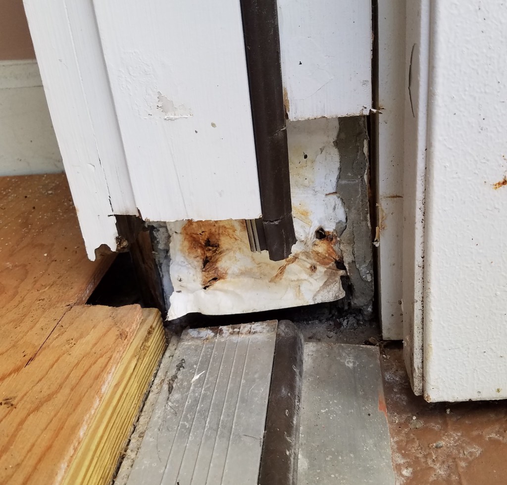 I fixed the door rot, but really the root problem is water backing up on the porch. I fixed the door 2 months ago, and it took me working off and on all that time to fully address every aspect of the problem.