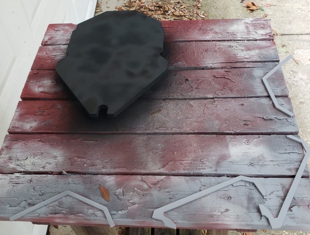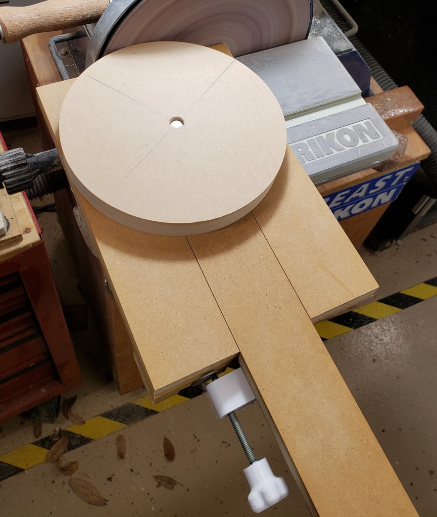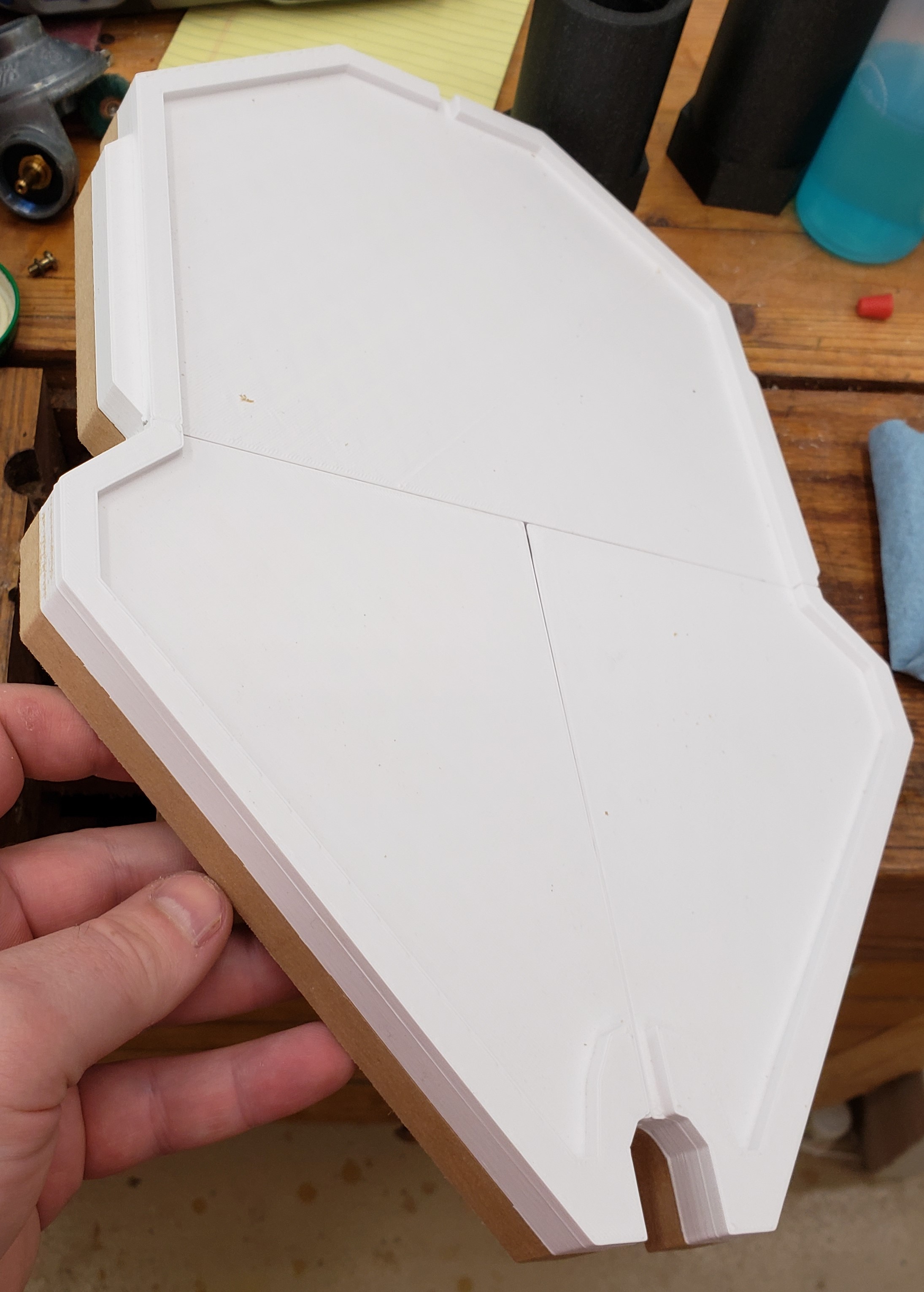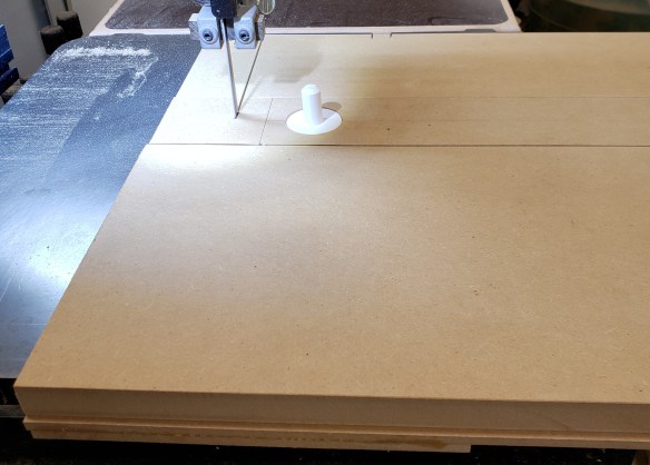 To keep from drilling tons of holes in my waste board I made the first operation to drill a hole for my screw, then pause the program. That drill operation is quick, and doesn’t stress the double sticky tape. With the screw installed in the same space every time, I reused the hole in the waste board, and knew it would be out of the way of my cutting. The results were rough, but they worked.