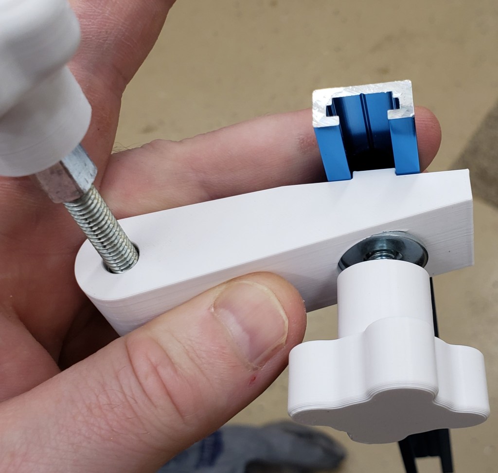 Things were coming together. I needed some labeling, so I printed slots that would accept 1″ label tape without the back removed. It meant I could rearrange tags quickly without peeling anything. A little calking on the back held the holders down. I used a few pin nails to tack them in place while the calking dried. No heads on the pins means they don’t interfere with the labels sliding in from the sides.