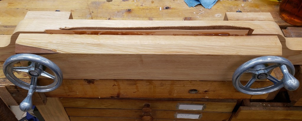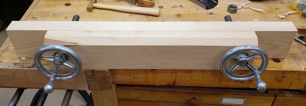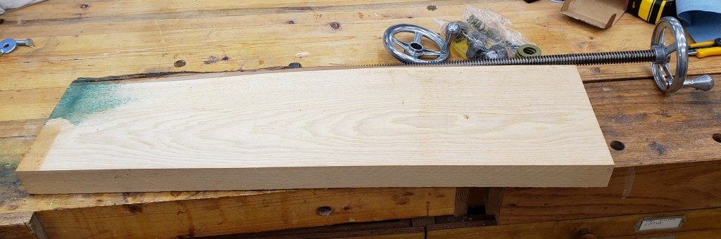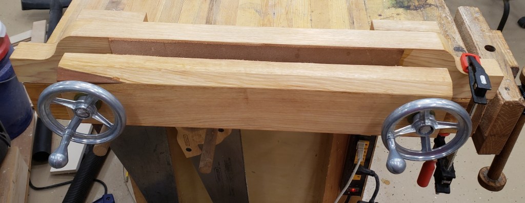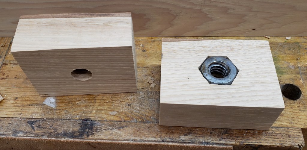 This cabinet has really deep shelves. That is great, but small stuff gets lost and even medium stuff gets hidden. I started making stadium seating for all my cans jars and bottles. I taped together two or three sheets of plywood, then laid out the stair step cuts. Glue bottles are smaller and got more layers that go taller. The wood finishing stuff tends to be bigger, so fewer wider shelves. 1/2″ plywood across the top makes a sturdy mini shelf.