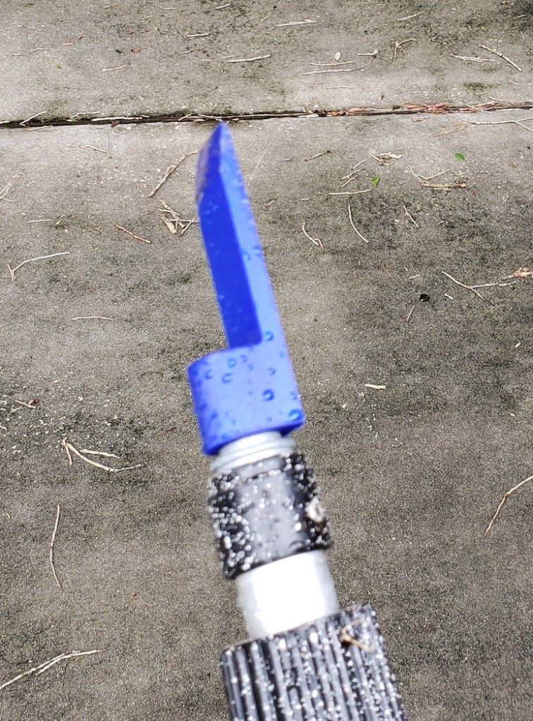 My first project was simple, but useful. I made a little scraper that would go on the end of some extension poles we had. I used it to go all around the house and scrap off the mud dobber nests that had built up all over the house. The printed plastic will not hurt anything on the house, and the extension pole lets me get to everything without leaving the ground. Now I can attach any kind of hook, grabber, poker, or whatever to an extendable pole.