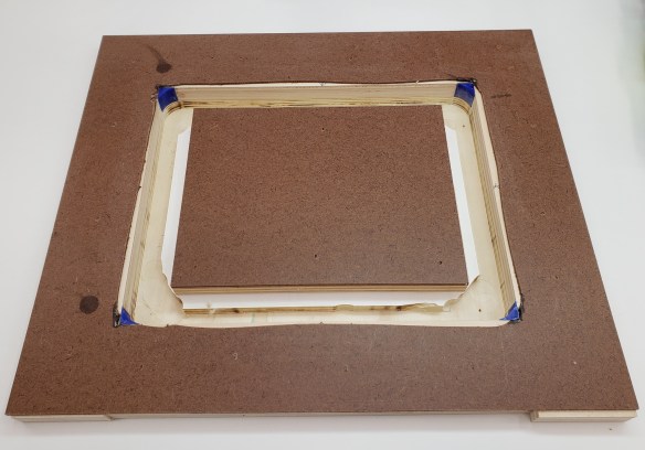 The other side of the top looks much cleaner and was originally what I was going to show. After the keys turned out so well I showed it to my wife and she thought it looked better that way. Not sure if it qualifies as Wabi-Sabi or not, but it feels like it to me. With all the keys installed the table top feels really solid and doesn’t flex anymore. I trimmed up the edges and put a roundover and chamfer all the way around.