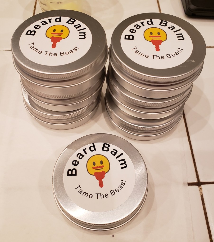 Jars and cups make it hard to extract the beard balm by hand, so I went with finger friendly 2oz tins for easy use. I managed to pour all of them without making a huge mess too!