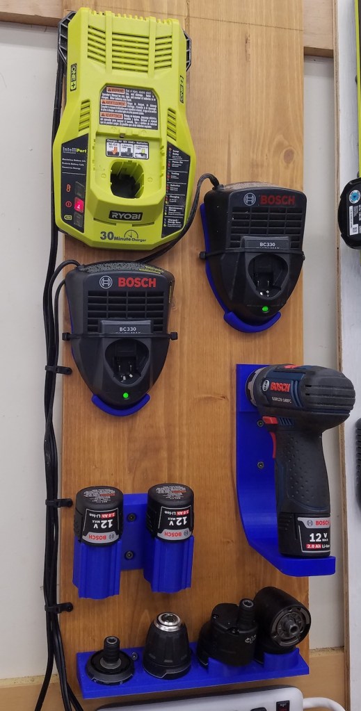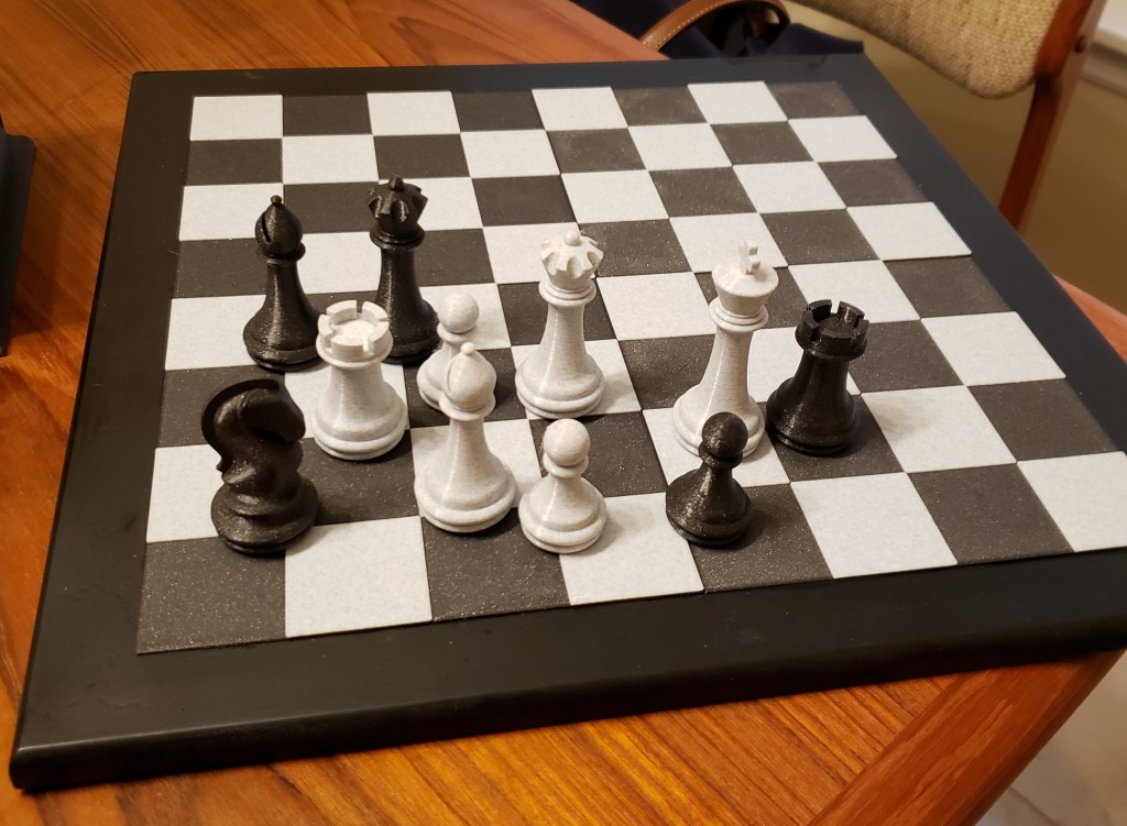 Moving from the shop into the house, my wife has been playing chess a lot recently. She wanted a chess set so I made one out of sparkly galaxy black filament and marble filament. I printed each one hollow, filled with sand, and capped with epoxy. The board is a set of 4 tiles printed with a color change from black to white. I put it all on a piece of MDF. That part wasn’t brilliant. I started with black polyurethane then tried to move on to spray paint. I still don’t have a good MDF painting technique apparently. The edges endlessly suck up what ever you put down. That part will probably get remade at a later date.