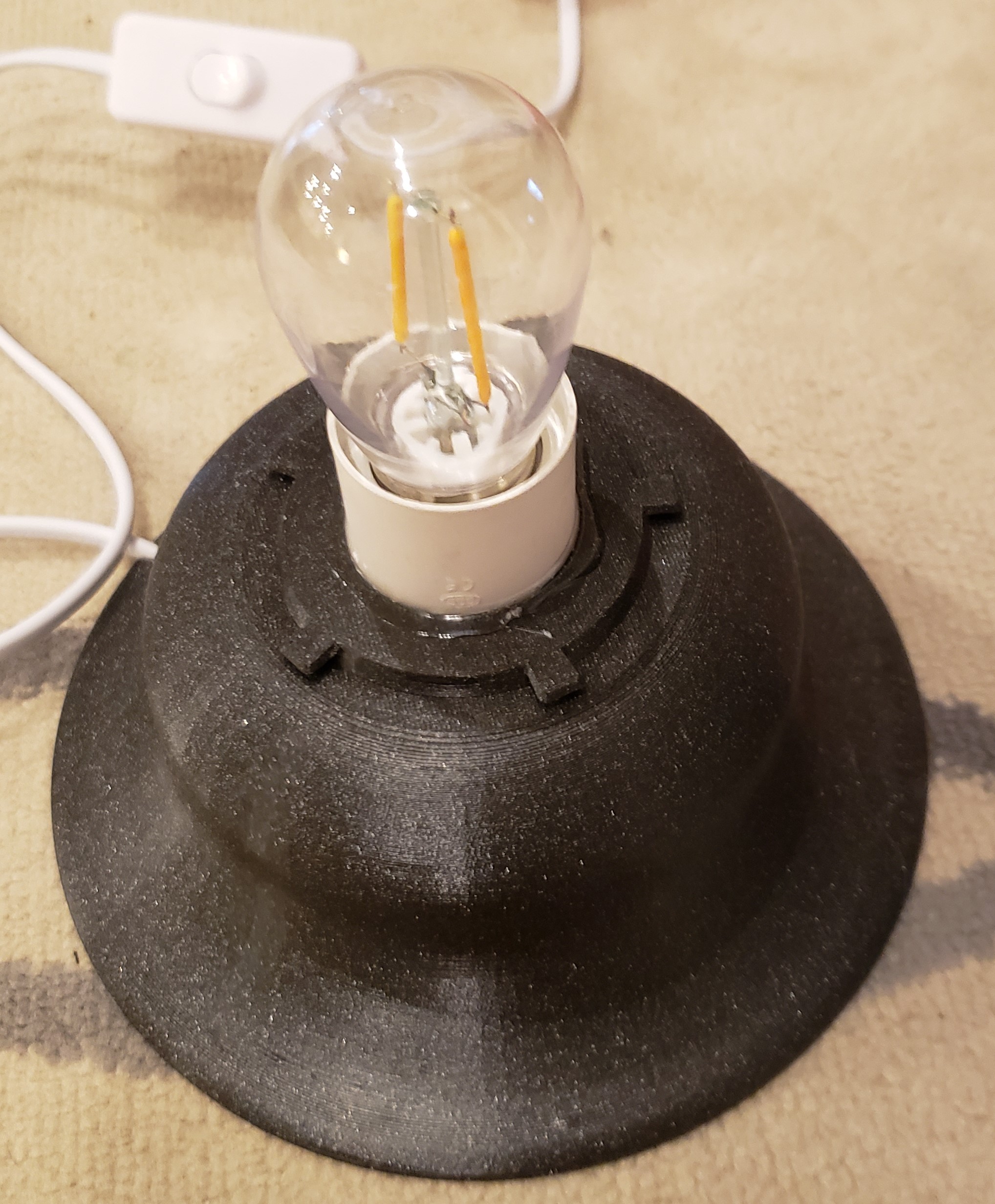 This moon lamp design comes in many flavors online. Thingiverse My implementation isn’t that unique. I did copy the spline shape used to attach the moon, and made my own base to hold the bulb. The base was once again filled with sand and capped. Now the lamp is quite hefty. The main challenge of this job was that the moon print took about 3 days. I accidentally interrupted one attempt when it was 90% complete… oops. The base is 6.5″ in diameter and the moon a little over 8″.